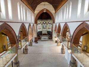 A warm, timber floored welcoming space edged with ornate carved Victorian wood panels and glass. The Vestry is a more informal meeting room for community groups and businesses, perfect for smaller gatherings of 8 – 12 (up to 20 theatre style) or as a breakout space for larger events.